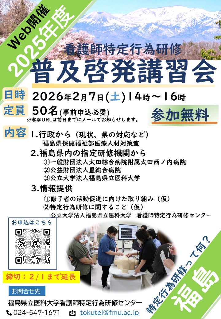 当センターでは、福島県からの委託を受けて、看護師特定行為制度の普及・啓発を目的とした講習会を開催しています。