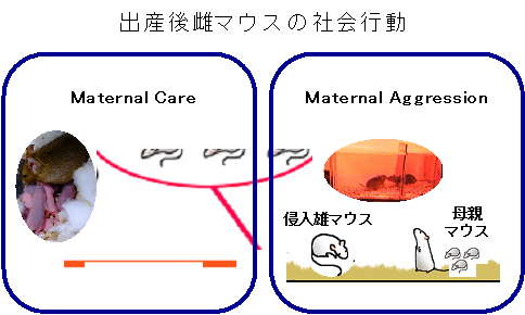 我々は、個体の一生を通して各発達段階に応じて変動するホルモンレベルとそれに呼応する脳内ホルモン受容体、特に2種のエストロゲン受容体アルファ(ERα)とベータ(ERβ)、の発現に着目し、様々な機能・表現型を持つ社会行動の発現を制御する脳内機構の解析を進めている。雌雄のマウスで各々、ホルモン動態が大きく変化する時期が幾つかあるが、雌マウスにとっては妊娠・出産に伴う時期において、最も顕著な社会行動の変化が見られる。しかしながら、他の社会行動、例えば雌の性行動や、雄の攻撃行動などに比べるとそのホルモン基盤、神経基盤の解析は容易ではない。その理由のひとつは、あくまでも妊娠・出産に伴うホルモンの変化に依存して発現する行動であるので、内分泌的、薬理学的、生理学的操作を加えての解析が困難であるためである。