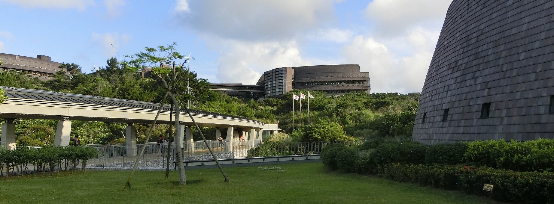 また、合同領域会議の後、OISTの先生方のご好意で、キャンパスツアーとラボツアーを行っていただきました。キャンパスからは、沖縄の美しい海や遠くの島々が見え、素晴らしい景観を満喫することができたばかりでなく、OISTの最先端の設備や芸術的な建造物に眼を奪われました。ラボツアーでは、神経科学や数理モデルに関する2つの研究ユニットに属される6つの研究室を、それぞれのグループに分けて見学させていただきました。最先端の研究を紹介いただくとともに、オーガナイズされた研究室を見学し、活発な研究者のみなさんと交流することができ、有益な体験をすることができました。