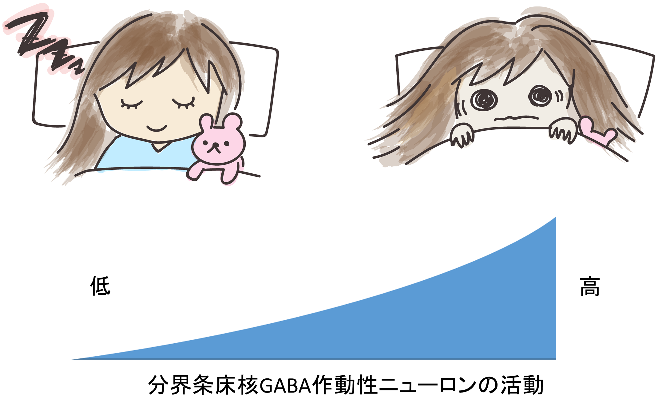 図2 不安に関与する分界条床核GABA作動性ニューロンの機能がたかまると不眠が生じる