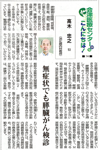 「会津医療センターからこんにちは」連載第74回は、消化器内科学講座高木忠之教授が執筆しています。 ぜひともご一読ください!
