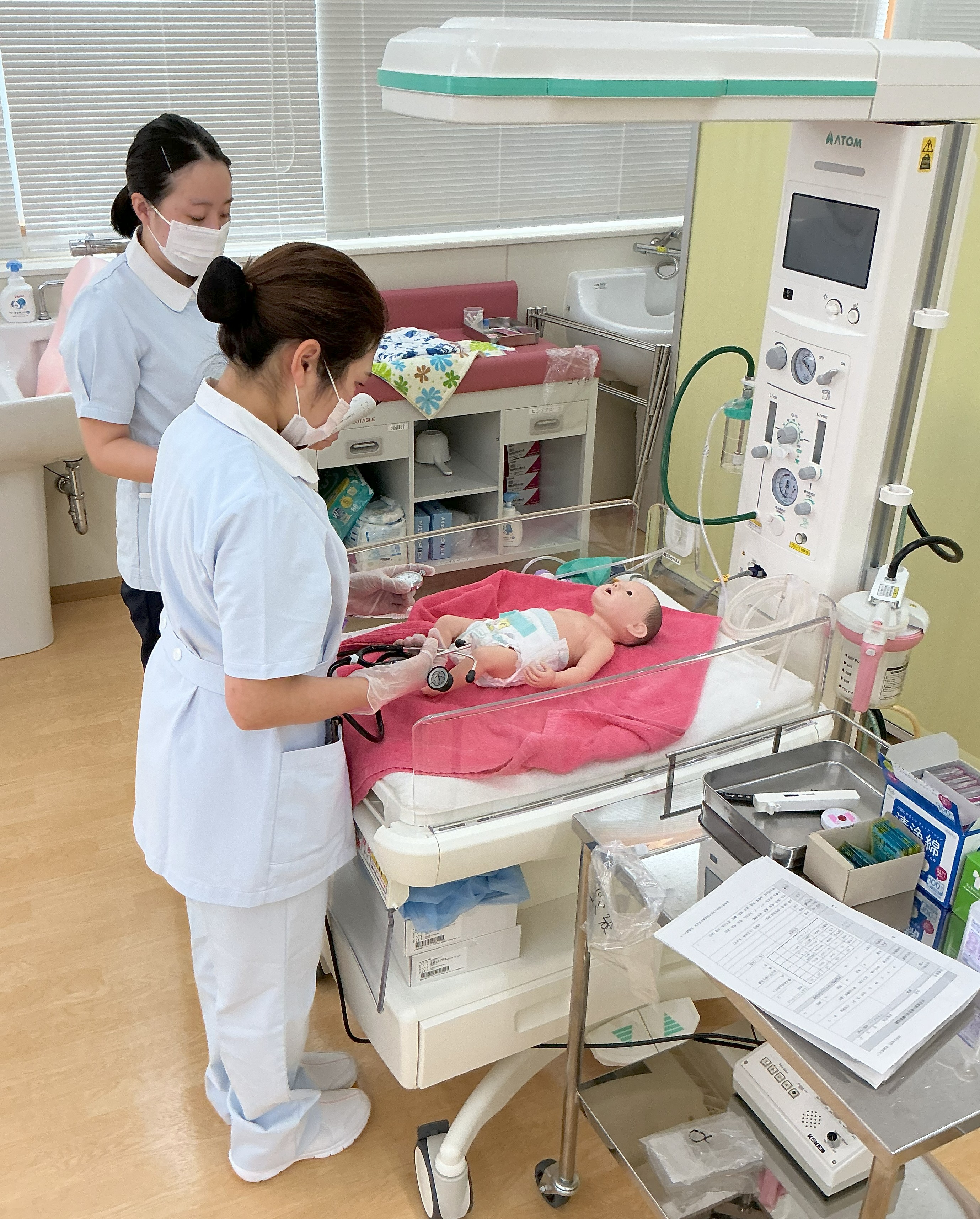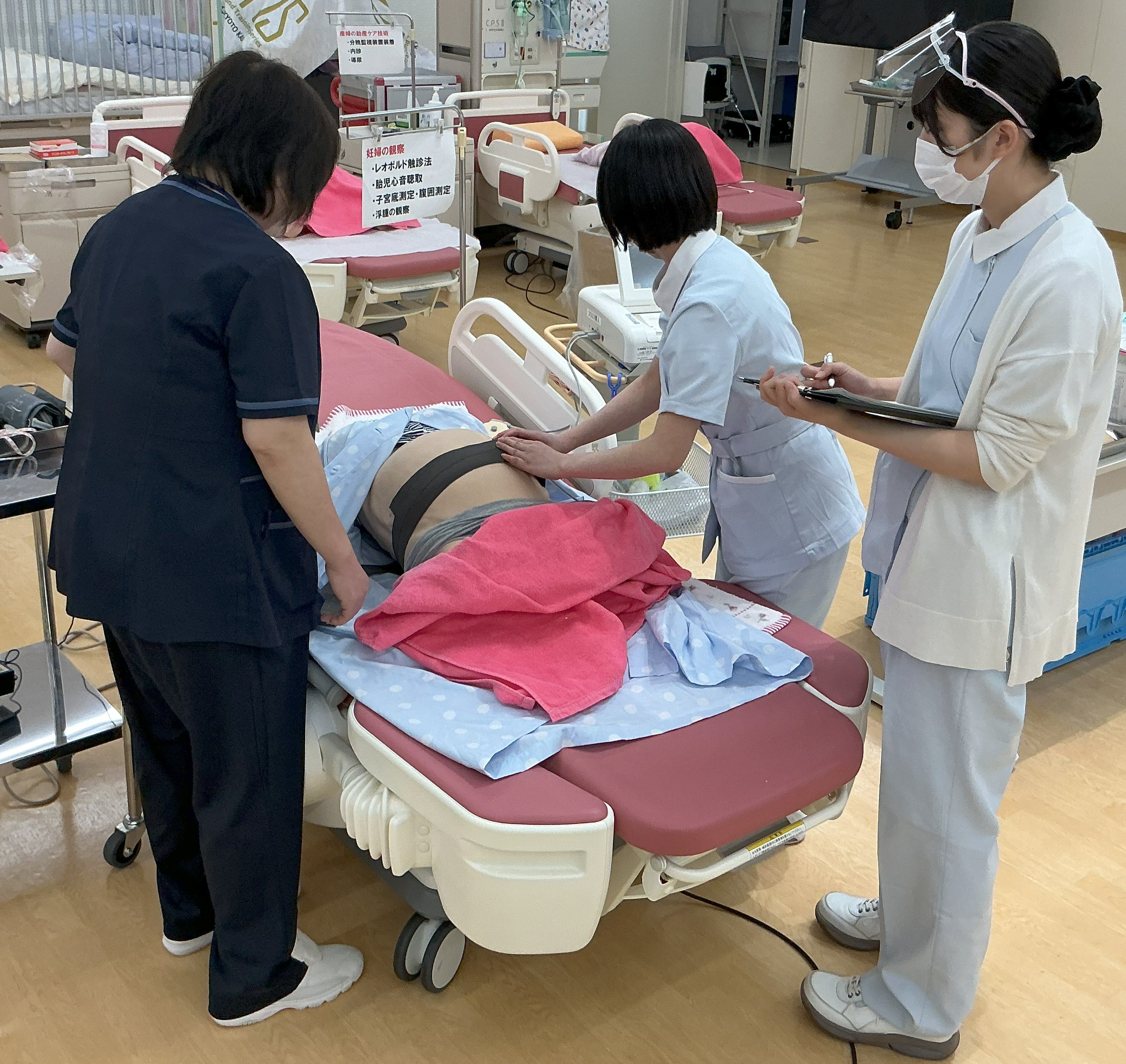 大学院助産師コース1年生が来週から始まる分娩介助実習に向けこれまで修得した技術の確認をしました。