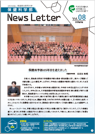 広報紙 保健科学部NewsLetter 創刊号 2022年3月 Vol.2 2022年9月 Vol.3 2023年3月 Vol.4 2023年9月 vol.5 2024年3月 Vol.6 2024年9月 vol.7 2025年3月 Vol.8 2025年9月