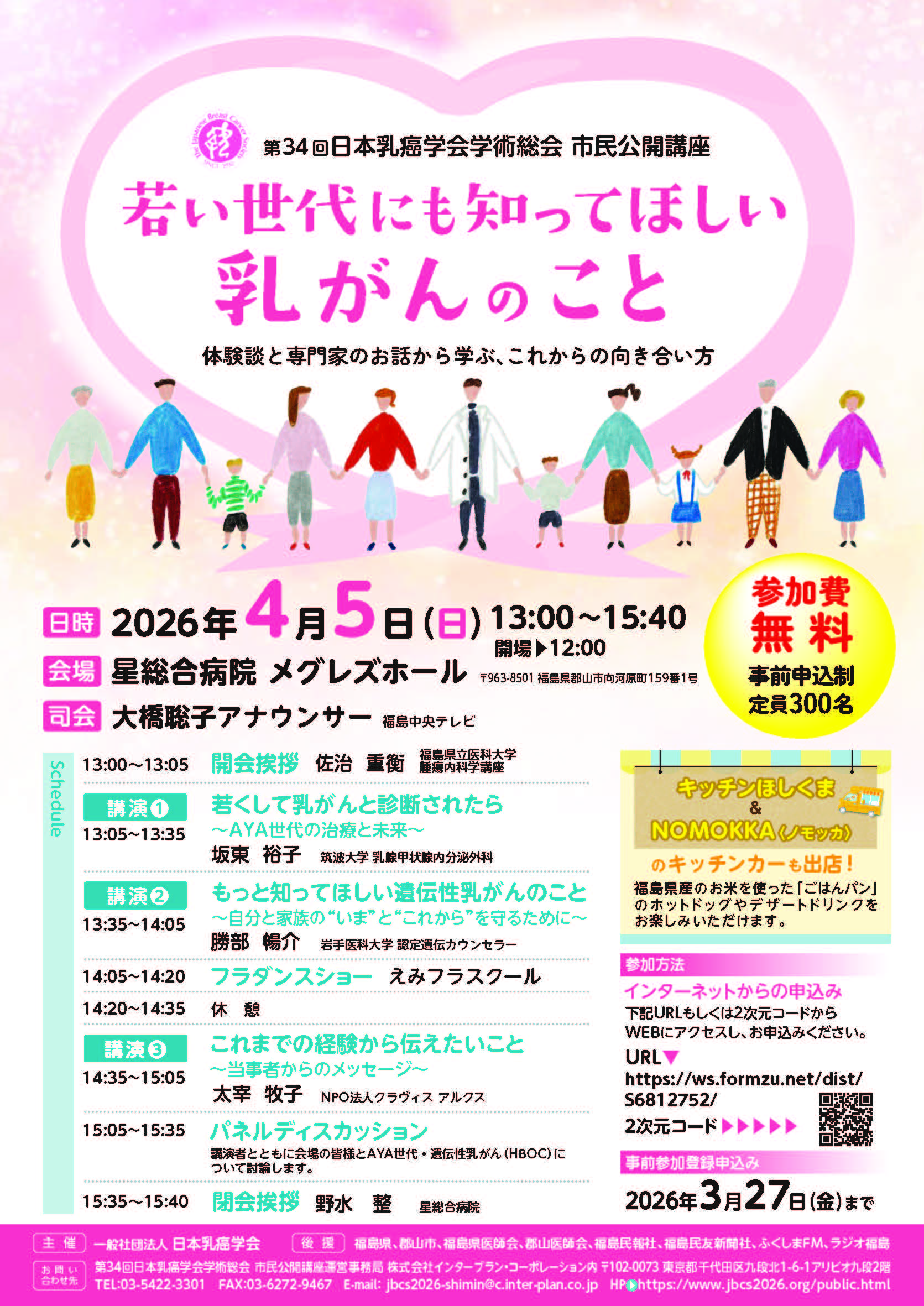 第34回日本乳癌学会学術総会 市民公開講座のお知らせ2026.02.262026年2月26日 第34回日本乳癌学会学術総会 市民公開講座が2026年4月5日(日)に郡山市で開催されます。詳細、お申し込みについては下記をご覧ください。第34回日本乳癌学会学術総会 市民公開講座皆様のご参加を心よりお待ちしております。