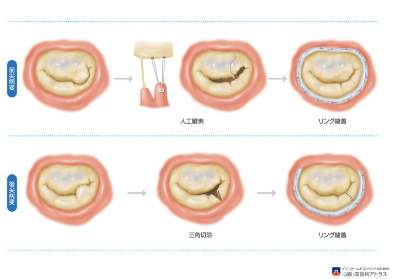 手術には、病変がある弁に対して、自己の弁を温存して修復する「弁形成術」と、人工弁に交換する方法「弁置換術」があります。