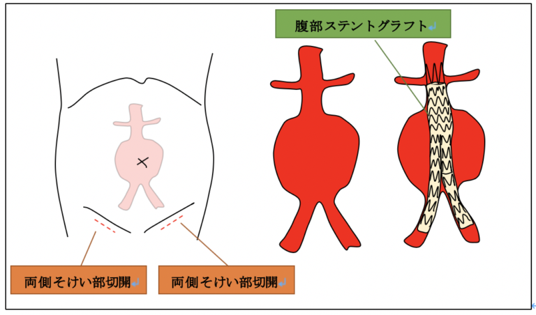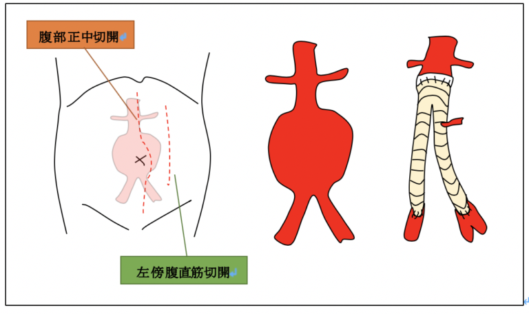 A4.腹部大動脈人工血管置換術と腹部ステントグラフト内挿術があります。どちらが適切かどうかは患者様の状態と血管形状によります。主治医とよく相談しましょう。