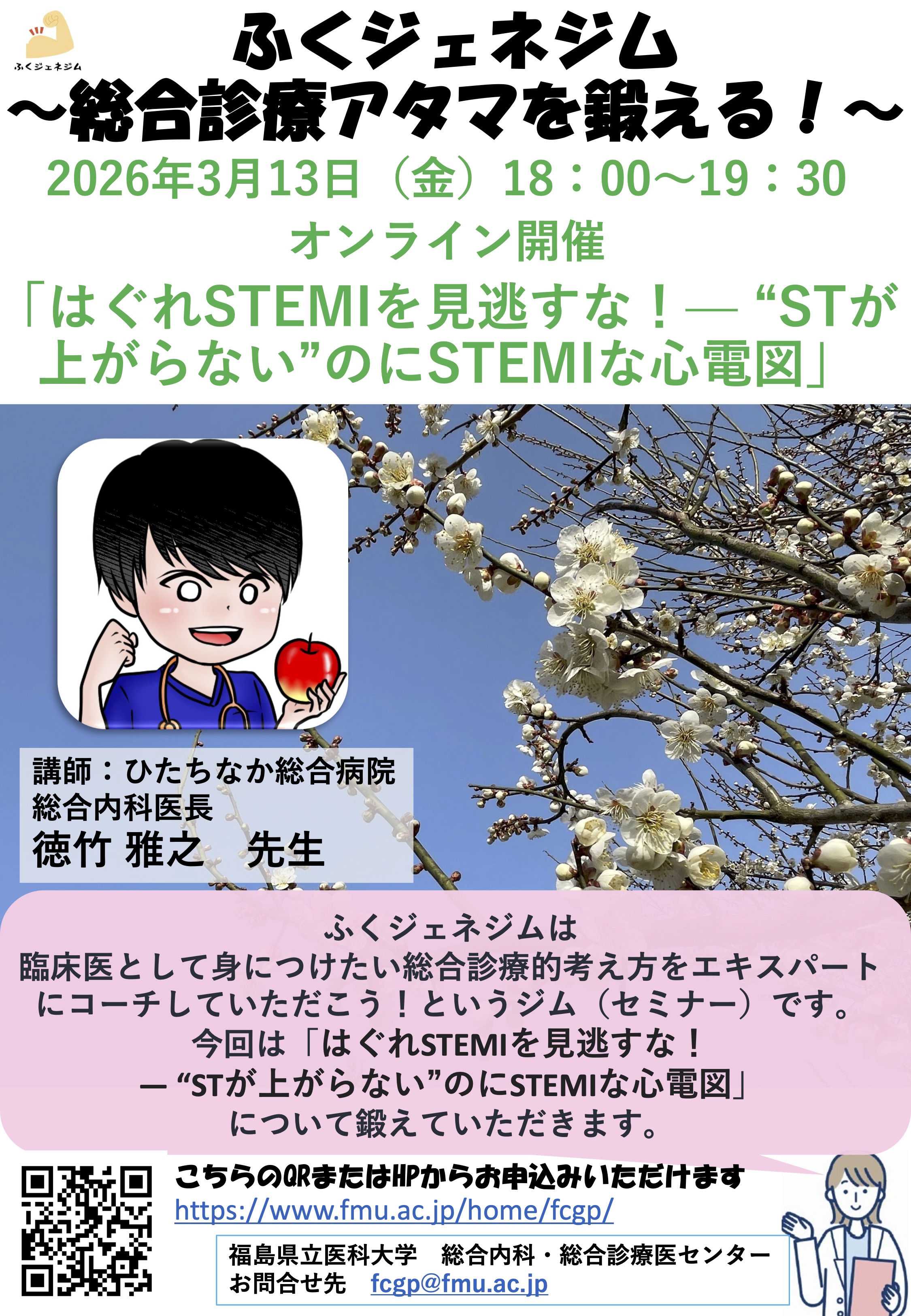 「ふくジェネジム」は、臨床医として身につけておきたい総合診療的考え方を、エキスパートに拘置していただこう!というジム(セミナー)です。