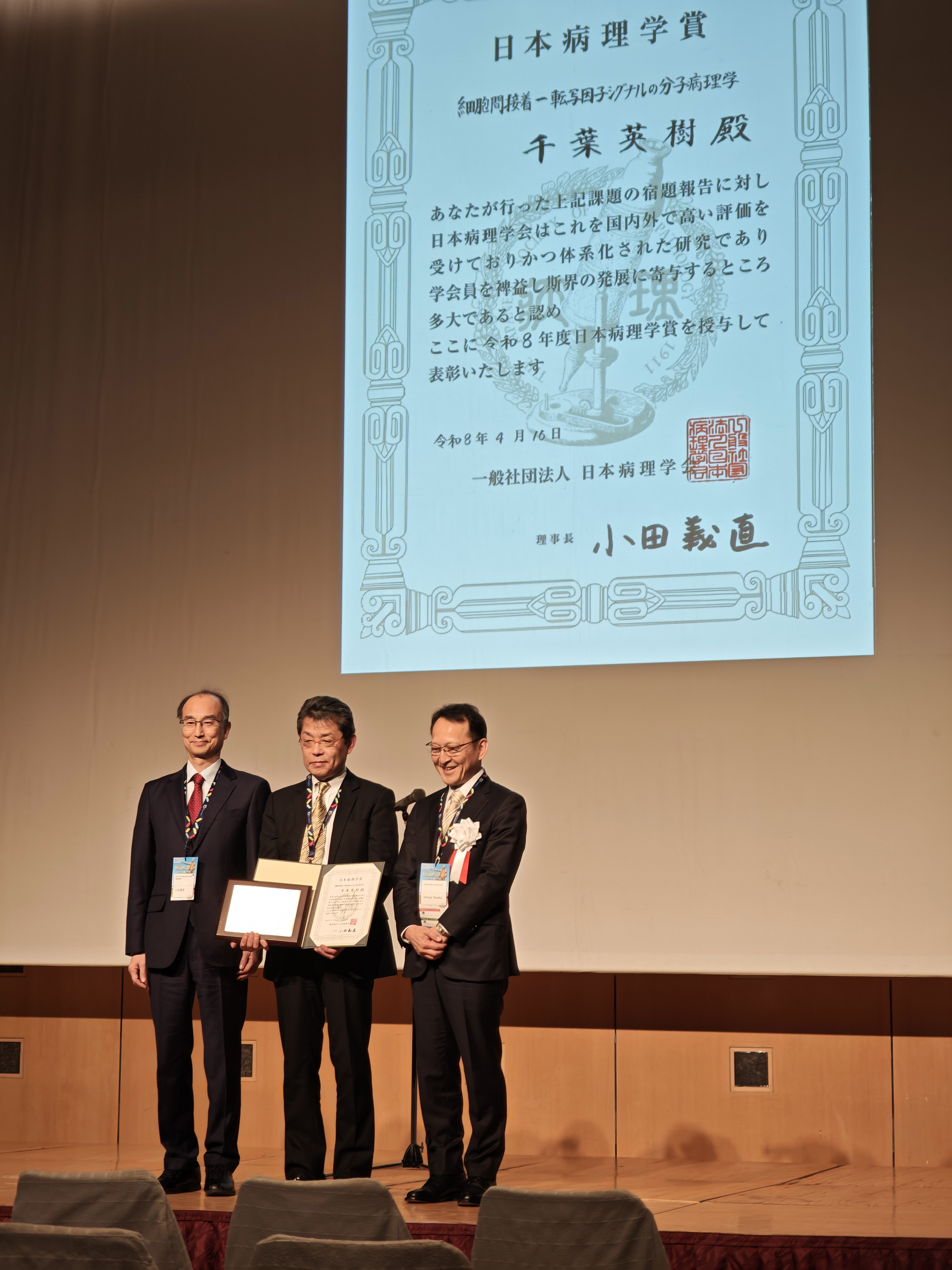 千葉 英樹 教授が日本病理学賞を受賞しました。