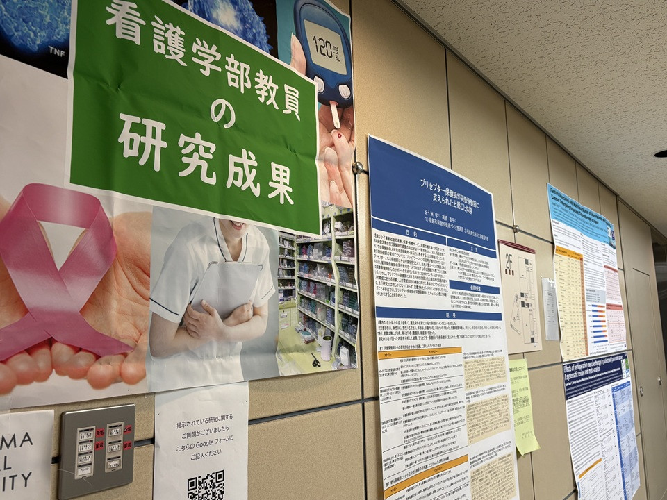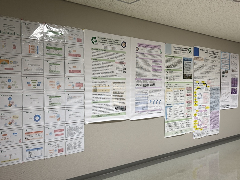 令和8年1月9日より本学8号館で看護学部教員の研究成果として、国内外の学会で発表したポスターを掲示しました。