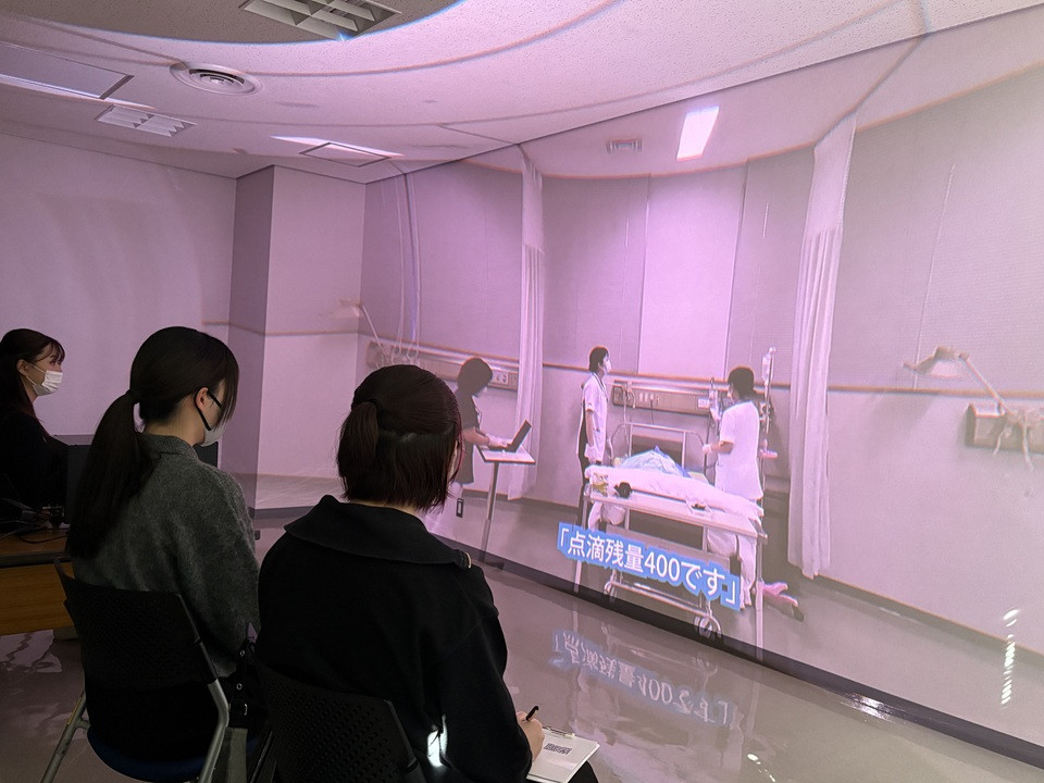 当日の体験会には看護学部の3年生・4年生が参加し臨場感あふれる映像を通じて活発な意見交換が行われました。