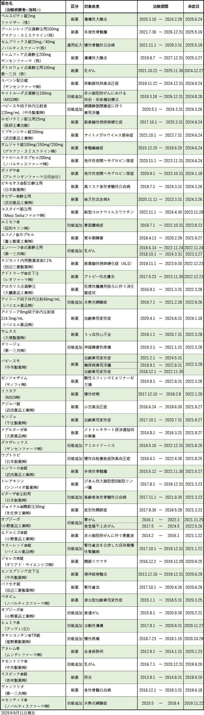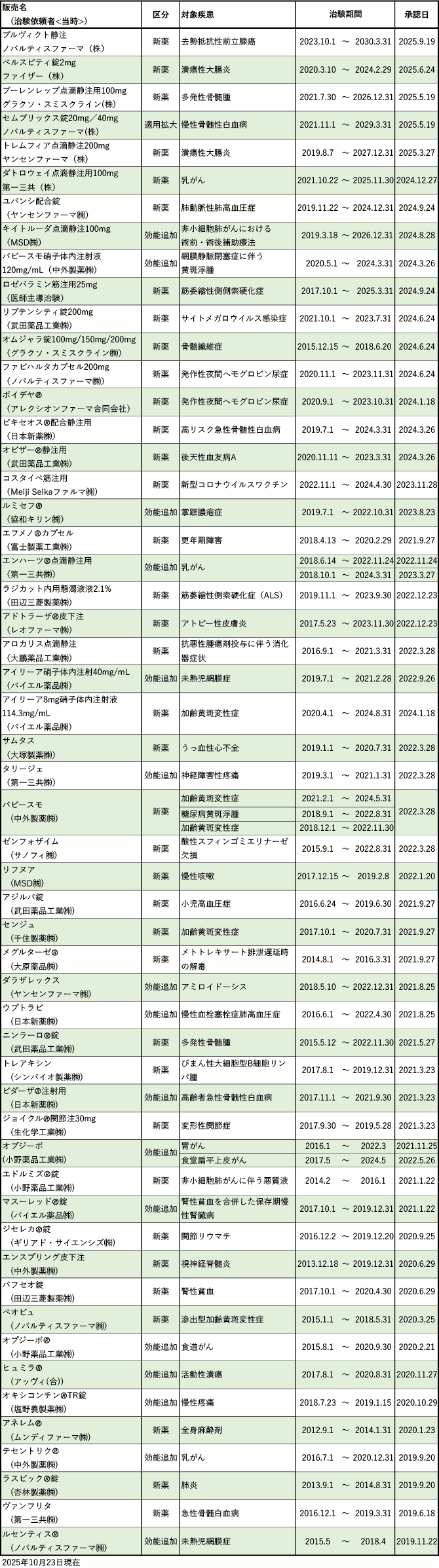 承認になったくすり あたらしい薬ができました 当院で実施した治験のうち、過去5年間に厚生労働省の承認をうけた医薬品の一部をご紹介します。 ※ 効能追加とは? 既に効果があることが分かっていた病気の他にも、別の病気にも効くことが分かり使えるようになること