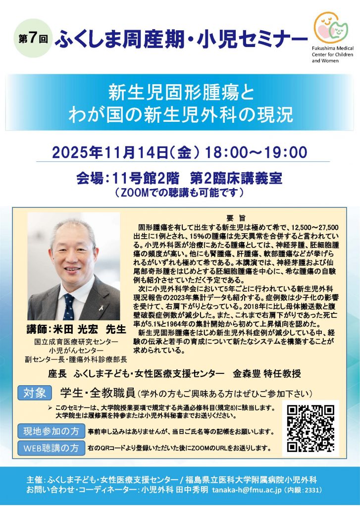 令和7年11月14日 第7回ふくしま周産期・小児セミナー開催のお知らせ