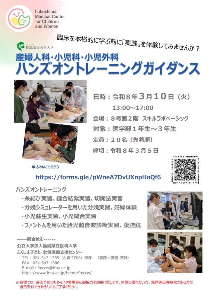 令和8年3月10日(火)開催 産婦人科・小児科・小児外科ハンズオントレーニングガイダンス