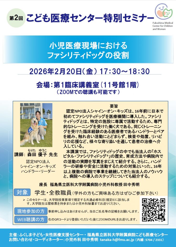 令和8年2月20日 第2回こども医療センター特別セミナー開催のお知らせ
