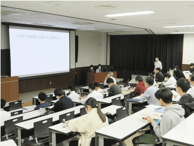 経験した症例をもとに、臨床推論を交えてフィードバックを行う症例検討会、外科系診療科による実技系実習、Advanced OSCE、外部講師の講演会などを行っています。