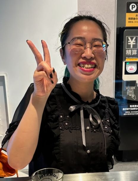 レポーターの赤間さん。いつも明るく元気な大学院生です。