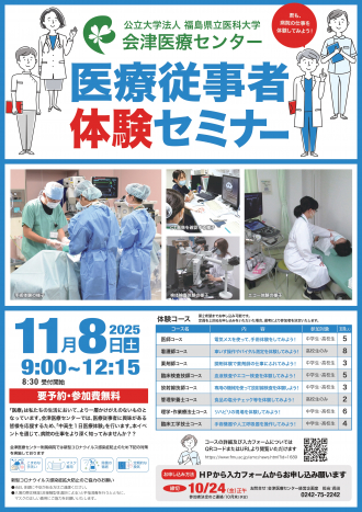 会津医療センター附属病院医療従事者体験セミナーを開催します!(募集締切を10/29まで延長しました)