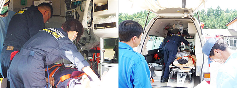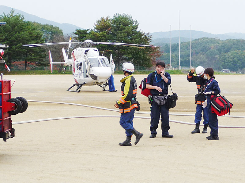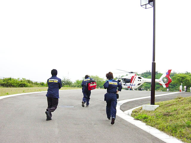 ドクターヘリが近くに着陸する場合は、速やかに待避してください。また、着陸後は救命治療を行いますので、近寄らないようにお願いします。