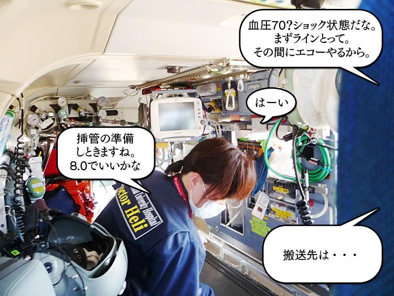搬送先医療機関は救命救急センターや災害拠点病院等の中から、ドクターヘリに搭乗している医師が、患者さんの容体や搬送時間等を考慮して決定します。