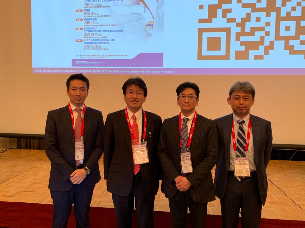 そのほか,消化器内科から高木忠之が「EHOを合併した膵癌術後再発十二指腸静脈瘤の1例」,小橋亮一郎が「抗血栓薬服用者における食道静脈瘤の内視鏡治療時の周術期マネージメントの現状と課題」,持丸友昭が「食道静脈瘤に合併した食道癌に対するESDの検討」で発表しました。