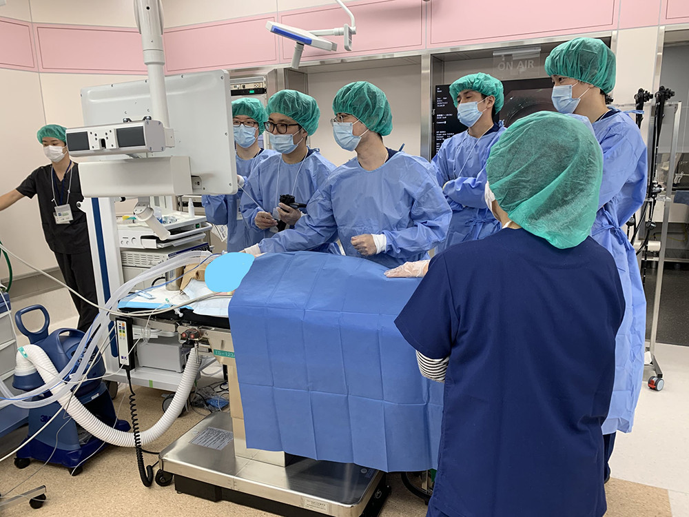 2020年7月14日(火),愛知県一宮市にある総合大雄会病院内視鏡センターにて,POEM(経口内視鏡的筋層切開術)の研修会が開催されました。講師として内視鏡診療部 副部長の中村純が招聘され,食道アカラシアの診断と治療について指導を行いました。研修には大雄会の消化器内科統括部長・内視鏡センター長の松山恭士医師をはじめ,4名の医師,看護師,技師の方にも参加していただきました。