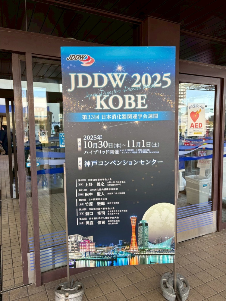 2025年10月30日(木)から11月1日(土)まで,神戸コンベンションセンターを会場として,JDDW2025 KOBEが開催されました.内視鏡診療部から,部長の引地拓人(病院教授),副部長の中村純(学内講師),助教の根本大樹が消化器内科の医師とともに現地参加しました.