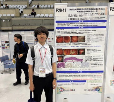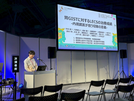 引地は,附置研究会「ESD研究会」に世話人として参加しました.中村は,Oral 5 「LECS/Function-preserving Surgery」において「胃GISTに対するLECSの治療成績 -内視鏡医が担う切除の意義-」を発表し,Abstract Award(優秀演題賞)を受賞いたしました.加藤は,シンポジウム 15「H.pylori陰性時代の胃癌診療」において,「ESDを施行した胎児消化管類似胃癌の検討」を発表しました. 藁谷先生は「難治性の胃ESD後出血に対しROLMが有効だった1例」,大塚先生は「家族性大腸腺腫症の残胃非萎縮粘膜に発生した胃腸混合型早期胃癌の一例」の演題でポスター発表をしました。